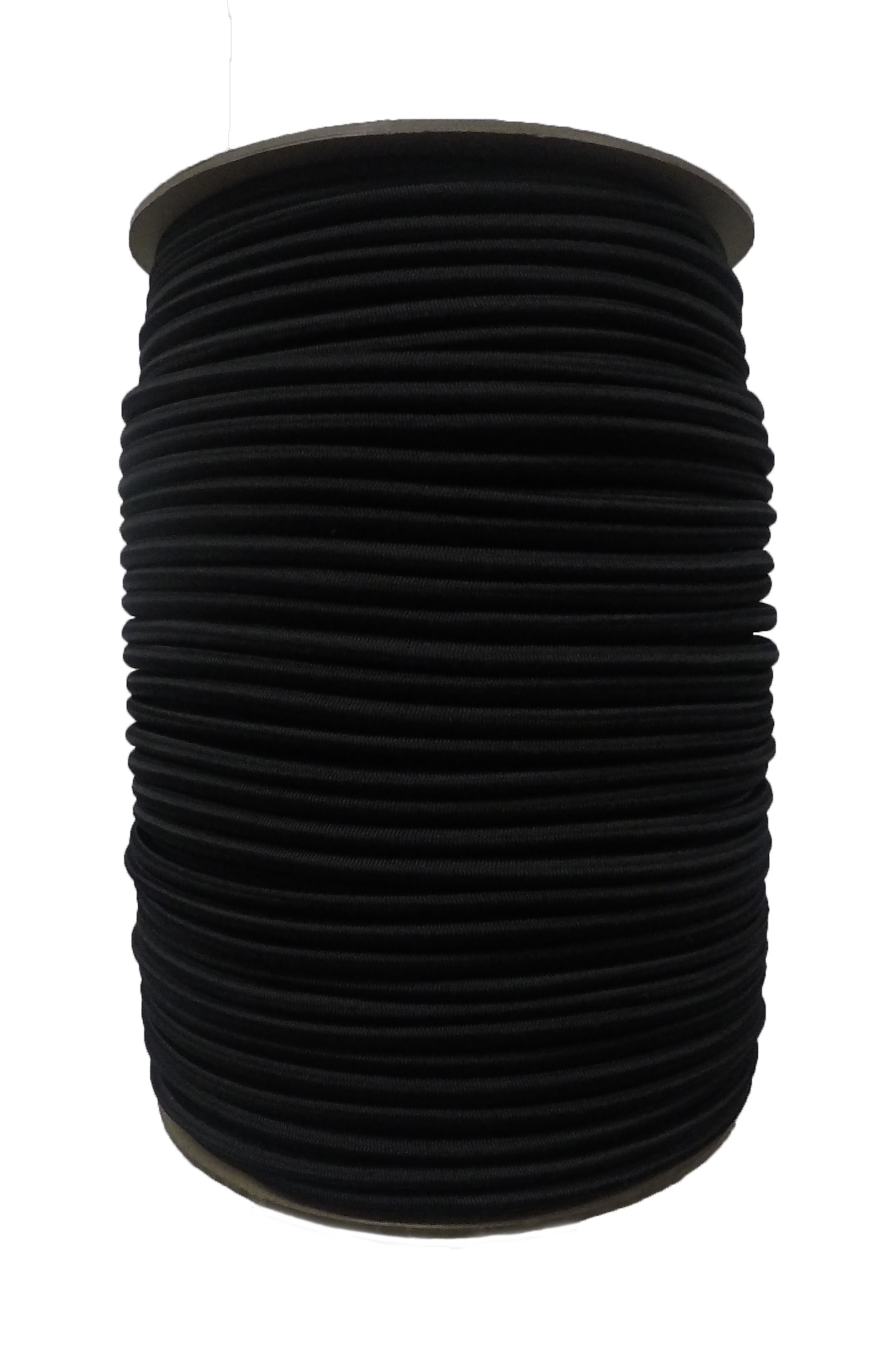 Bungee cord is constructed with a core consisting of continuous strands of rubber with a jacket made of polyethylene. Bungee Cord has an elongation or stretch of 120% +/- 15% (a 6″ piece would stretch to 13.2″ in length)